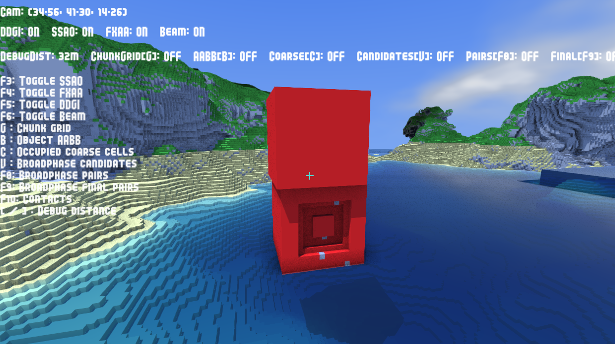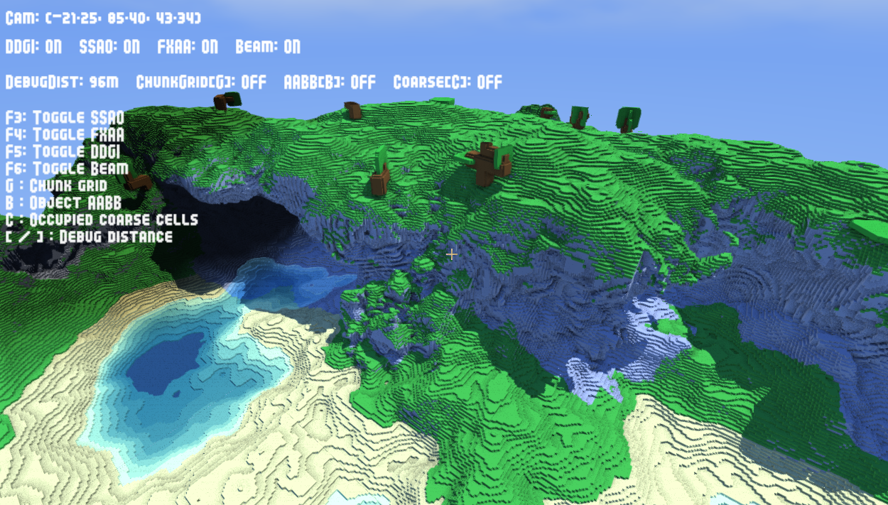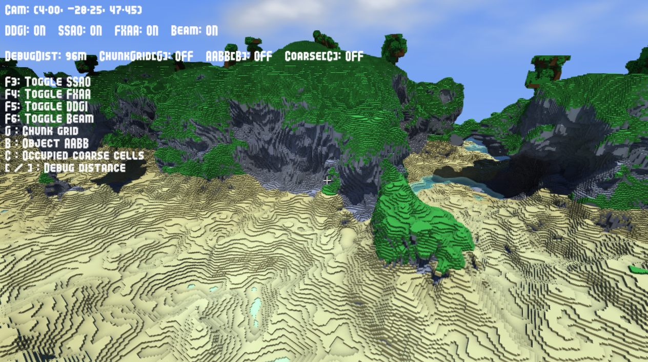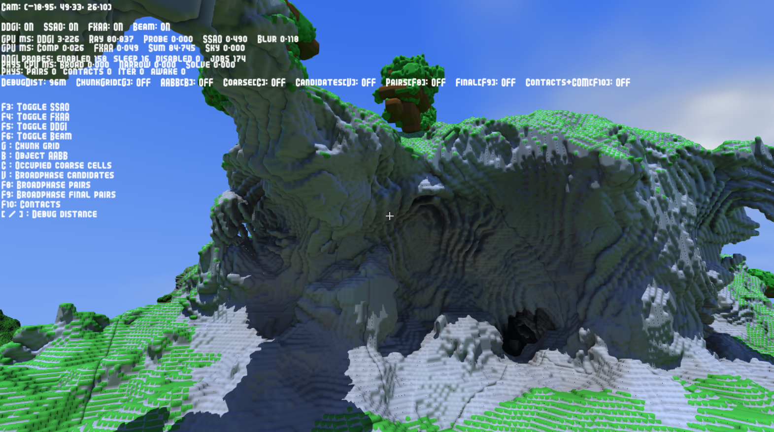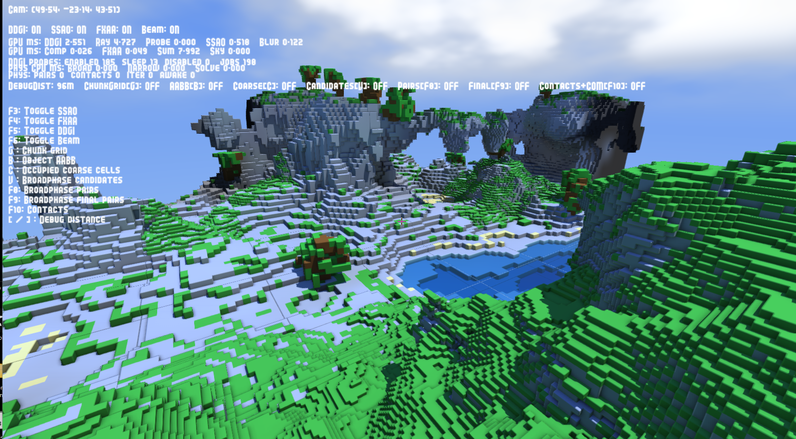 changement de la taille de chunks ( 32x32x32 -> 16x16x64 ) adaptation de la coarse grid, adaptation des probesamélioration des SSAO