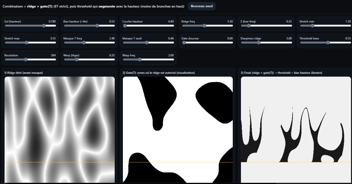 recherche d’une fonction 3D pour decrire les arbres ( au final faut mieux passer par un vrai algo )