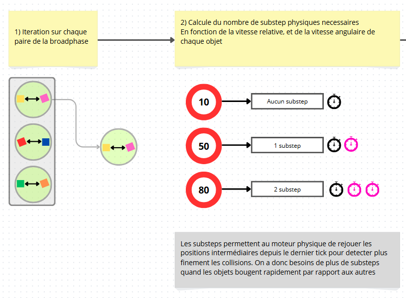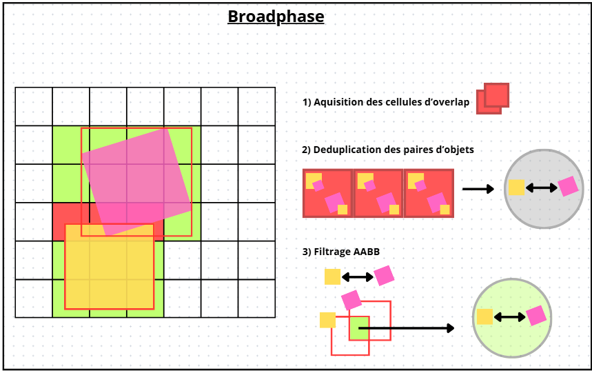 -> En sortie de broadphase, lorsqu’un objet est à cheval entre deux chunks, on a une paire par chunk, donc un objet sur le sol peut generer jusqu’à 4 paires. A voir si y a pas une meilleure façon de faire.-> Relecture de la Narrowphasecréation d’un namespace special pour toutes les fonctions geometriques