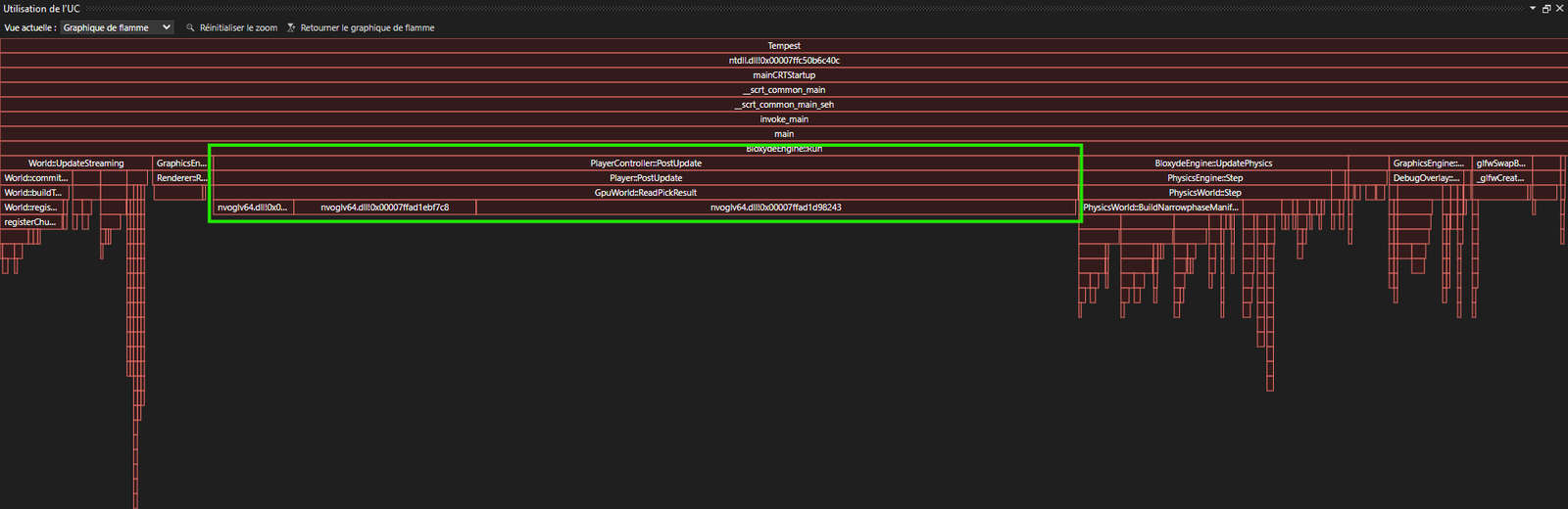En observant le diagram de flamme pour la narrowphase à la base, on voit que le player pickup à l’air beaucoup trop lourd :